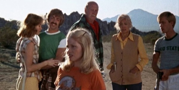 From the opening silhouetted shots of the southwestern desert mountains, the score immediately transports us to a place of general unease as we are introduced to a part of the country where busted car parts pass as landscape architecture. Just passing through, a well-to-do family on their way to California encounters some gnarly-toothed, cannibalistic locals at a beat-up gas station (a harbinger trope honored 35 years later in The Cabin in the Woods) and must survive their ongoing attacks when their RV breaks down in the desert mountains near an old nuclear testing site.