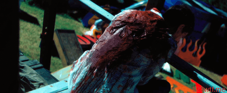 But for its shortcomings, this metasequel was (for me) a far more engaging and fun horror movie experience than the original. And, for those who care, it follows more contemporary horror filmmaking tropes—e.g., the inclusion of a graphic sex scene, abundant nudity, and more brutal death scenes. Despite the nudity, the Leatherface-like panting and breast-chewing perversity were not addressed at all. Some of the more brutalized simplicities include the severed head window break scene (a nice spin on a basic necessity for a killer’s entry) complemented by the victim’s bone-exposed leg break during her escape and water-balloon-bombing blood splatters. These small but appreciated flourishes add a lot to otherwise simple and otherwise typical scenarios.