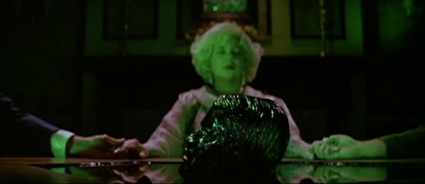 Seeking comfort our patient Karen (Susan Strasberg; Mazes and Monsters) calls her ex-boyfriend Harry (Tony Curtis), a psychic hack who dresses like a Harry Potter villain and dances like a fiend. When Karen goes under the knife to have the tumor removed, things start to get weird. The “tumor” possesses Karen who utters incomprehensible sorcerous hisses, the surgeon tries to cut off his own hand, a possessed old lady across town does a rain dance and levitates, and a séance reveals that our tumor represents a Manitou, the immortal spirit of a 400-year old Native American medicine man.