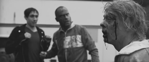 The energy is high as we jump right into the deep end of gore with haphazard attempts to give a Nazi zombie mouth-to-mouth rescue breathing, possessed/marionetted murderous rage, blatant guts-strangling and organ-brandishing, bare-handed scalping and chunky head-smashing, general blood-splattering stabbery, some just plain cruel zombie crotch humor, projectile vomit and even vomit-eating! Yuck! It likewise captures the same levels of silliness, in fact drastically more so, and the gore is consistently abundant.