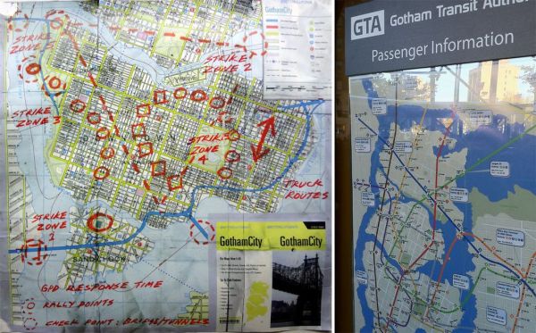 - The action at the end takes place in the Downtown area of Gotham. Why? Based on the location of the bridges, and proximity to City Hall (which is downtown) I feel safe saying it’s downtown Gotham. This is important because it helps narrow down the action.
