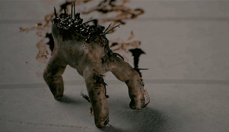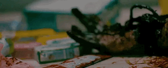Our monster is a botanical parasite that metastasizes in the blood stream to induce twitchy zombiism. The first victim is the gas station attendant (Charles Baker; The Neon Demon), who thrashes and contorts his mangled limbs, a marionetted host to the splinter monster.