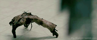 Early encounters with the monster are deliciously macabre as a freshly flattened roadkill slug-crawls towards an intended victim. We see the infectious splinters probe about like the prongs of a sea urchin. It’s REALLY cool. Infected zombie-like animated bodies flailing undexterous limbs, and disembodied hands twitch like something out of Bride of Re-Animator (1989). Everything looks great and, given the premise, the delivery is shockingly credible.