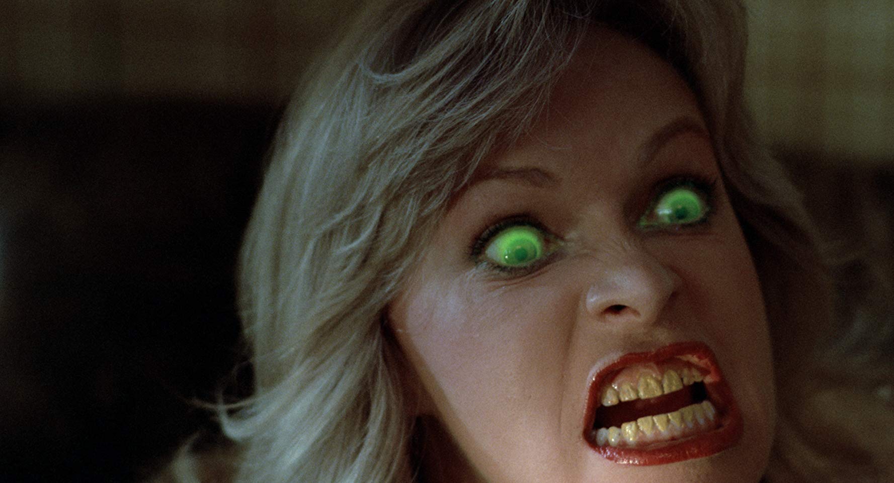 Green glowing eyes cue us to Susan’s supernatural powers as she ignites a handsy jerk’s car burning him alive (the most deserving of all deaths), assumes a clawed demonic form to tear up her gardener, and goes full-on Trancers on another victim.