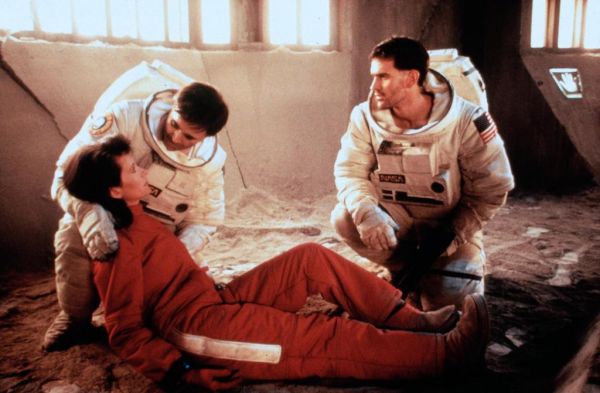 To investigate the origins of this extraterrestrial robot, Grant and Ray are sent back into space where they encounter a stronghold on the dark side of the moon and find a “human” woman (Leigh Lombardi) in some sort of cryo-stasis. Our astronauts find that the “alien woman” speaks an alien language, and there are yet more man-killing robots hunting them down on the moon’s surface.