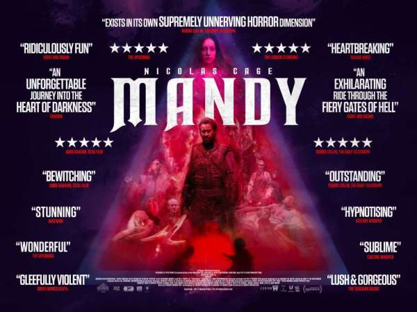 The MFF podcast is back, and this week David Cross (of the Award Wieners Movie Review Podcast) joins us to discuss the excellent 2018 film Mandy. It’s one of my favorite movies of recent memory, and I love every choice that director Panos Cosmatos made. The revenge film is a blast to the senses that overloads your eyes with red hues, blood explosions and dreamlike cinematography that creates a trippy experience. In this episode, we discuss chainsaw fights, low budget filmmaking, and the excellence of Nic Cage. Enjoy!