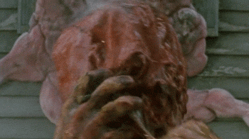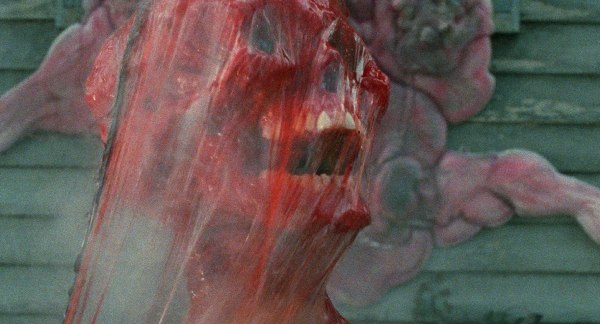 Once fully formed, this monster looks awesome! As far as rubber monster suits of the 80s, this ranks really high. As if laughing at its own lunacy, this massive monster basically teleports through the household plumbing of its creation to terrorize the brothel inhabitants and pick them off one by one with its hook-like limbs and prehensile umbilical cord. The first death scene is a brutally sloppy decapitation. However humble the budget, the gore and creature effects are ample. And, totally inexplicably, the end scene features a crazy gore-slathered face-melting scene.