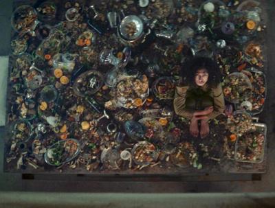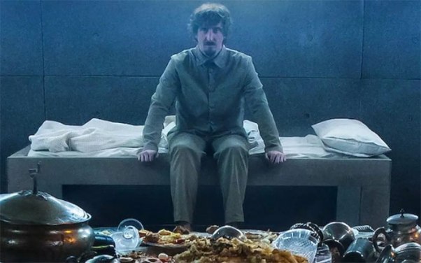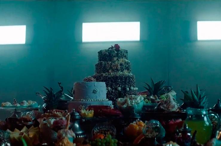 As if introducing a ritzy episode of Chef’s Table, a vast kitchen teeming with top pedigree culinary masters produces a cornucopia of high caliber, gorgeously-plated dishes. From lobster and fish to quail to quince, all such entrees find themselves crowded on a stone platform destined to feed the incarcerated occupants of a vertically oriented prison… two inmates per floor will dine, followed by the two of the level below, and so on for perhaps 150 floors (or more?). And whereas what is left for those at level 47 may strike the eye as unappealing, imagine the souls at level 138. How do they survive? And those who do… what stories do they have; what stories do they hide?