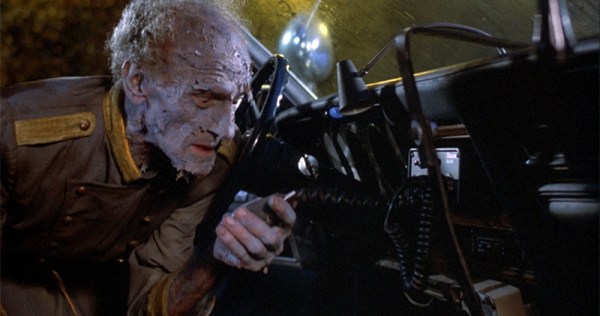 Unfortunately, the cadaver storage barrels aren’t very secure and one releases a toxic gas which (in a roundabout way) makes its way into the atmosphere animating the dead, including the cadavers in the warehouse. With the necrotic gas in the atmosphere, a little rain over the nearby cemetery brings a taste of Armageddon as corpses animate and rise from their graves. Meanwhile Freddy and Frank are freaking out, call in their boss Burt (Clu Gulager; The Willies, The Initiation, A Nightmare on Elm Street part 2, Piranha 3DD, From a Whisper to a Scream) and the three of them wander into some shenanigans to cover up this undead mess.