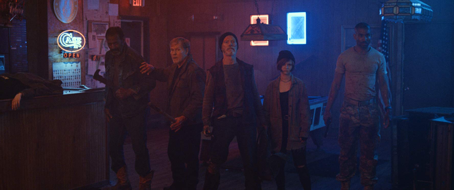 Meanwhile, hanging out at their local VFW, Fred (Stephen Lang; Don’t Breathe, The Monkey’s Paw), Walter (William Sadler; The Grudge, Tales from the Crypt S1, Tales from the Crypt: Demon Knight, Ava’s Possessions), Abe (Fred Williamson; From Dusk till Dawn), Thomas (George Wendt; House, Bliss, Family), Lou (Martin Kove; The Last House on the Left, Cobra Kai) and Doug (David Patrick Kelly; The Crow, Twin Peaks, Dreamscape) heckle each other as veteran’s do, drinking away their worries with oft-one-too-many.