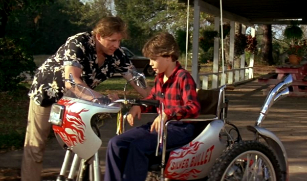 We are introduced to a quaint small town—the kind where everybody knows everybody—where we find our preteen protagonist Marty Coslaw (Corey Haim; The Lost Boys, Watchers), a boy in a zippy electric wheelchair created by his alcoholic Uncle Red (Gary Busey; Piranha 3DD, Predator 2).