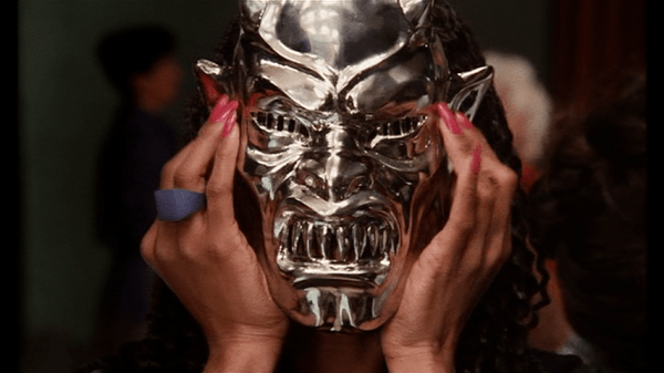 This Italian treasure opens with a mildly meta scenario. A menacing figure in a partial steel Phantom-esque mask hands out tickets to a special event to whatever strangers pass by. Invited to this mysterious screening of a secret movie, our cast of victims convene upon the theater for a horror movie whose events parallel events transpiring in the theater, much to everyone’s horrible detriment.