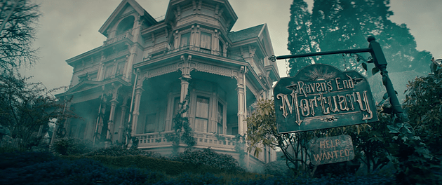 Our paper boy ascends a long, moss-shrouded stone staircase from the woods to a lone funeral home to meet at the door, much to his horror, a man toeing the line between Phantasm’s (1979) Angus Scrimm (The Tall Man) and Poltergeist II’s (1986) Julian Beck (Kane)—the funeral home’s mortician: Montgomery Dark (Clancy Brown; The Bride, Nothing Left to Fear, John Dies at the End).