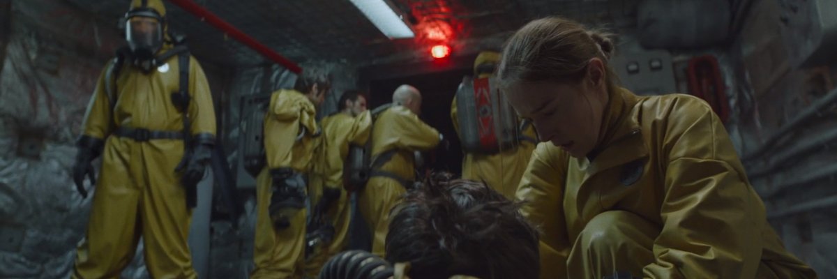 Set in the USSR 1984, the opening shots of the arctic tundra with a helicopter approaching a snow-besieged facility feel undeniably inspired by The Thing (1982)—as will be the case for many other aspects of this film. When Anya and the team find a presumed-dead lab assistant (Darya Shagal) emerging from the dark caves, something is very wrong with her. She has been infected by a symbiotic, fungus-like growth that echoes H. R. Giger’s artwork that brought us the creatures and ship design in Alien/Aliens (1979, 1986). Like so many movies that clearly inspired it, the urgency placed on our protagonists is that this infection must not reach the surface; the rest of mankind.