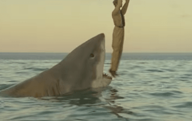 After what I can only describe as three straight minutes of awkward softcore windsurfing porn, the movie corrects its horrible misstep with a shark attack. The shark POV is no more menacing than peaceful underwater shots of coral reef and school fish, yet leads to our shark takes a chunk out of the windsurf board. Unfortunately, we see as little blood as we do the shark—which is to say none at all.