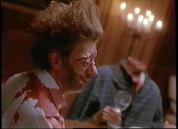 Granny (Stella Stevens; The Terror Within II, The Manitou, Monster in the Closet) has invited her whole greedy, loveless family for Thanksgiving. They’re morally bankrupt people and they all want her dead so they can collect the insurance money.