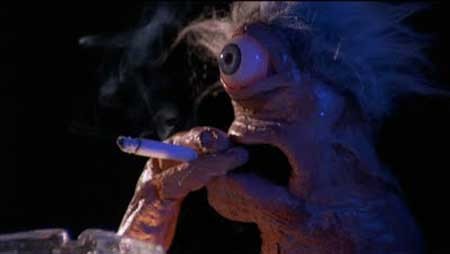 That’s sort of a trend in this movie… little penis-headed muppets. Apparently, the farmhouse is infested with these weird little phallic rubber monster minions, and they serve a gangly-limbed Prince of Darkness FX’d as a man-sized marionette (that is clunky and looks terrible).
