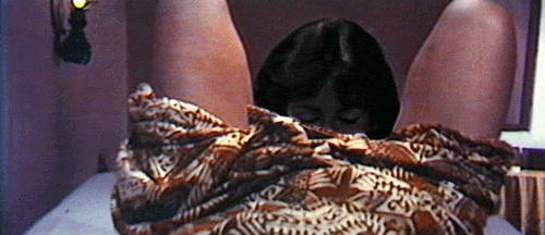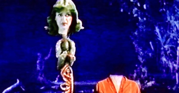 The dialogue with the elderly witch has the maturity and exposition of a child’s fairy tale, and Cathy’s first lessons in black magic are visually just as silly. The animal transformation scenes are… well… they tried. But the major special effect of this movie is when Cathy’s head flies away from its body with her bodily organs and guts in tow. The effects are done by some pretty poor rotoscoping, and lack the grossout appeal for which we’re accustomed in newer movies. However, in concept, the movie remains an oddity in that Cathy has become a sort of floating head vampire which feeds on unborn children still inside their mother during childbirth. Are you thinking what I’m thinking? Yup, I’m reminded of that scene from Re-Animator (1985) as well!