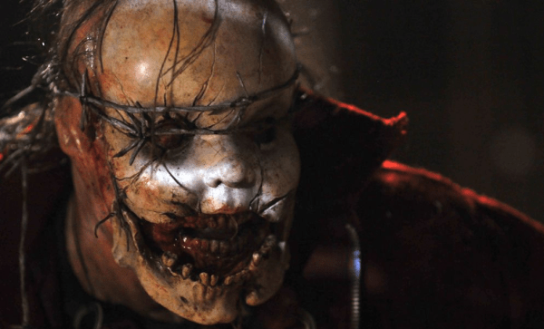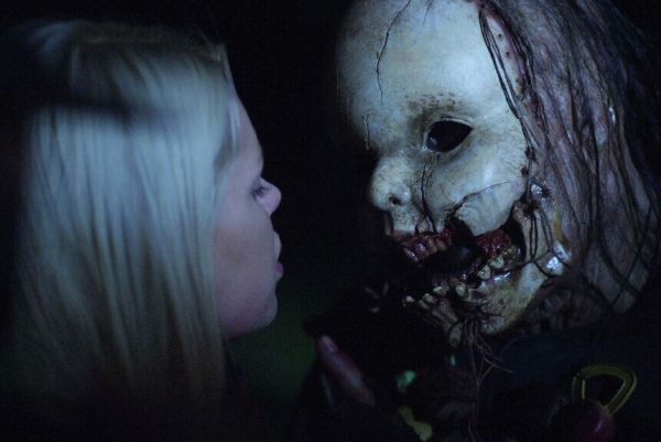The Babyface killer (Danko Jordanov; Wrong Turn 6) is a dark force of nature, with an incredibly creepy cracked mask. His hair and skin harken of Jason Voorhees whereas his mask, behavior and backstory smack more of Leatherface’s origin. When this hulk springs into action, he is fast, agile, skilled and shocking. Any gorehound ought to be quite pleased with this.