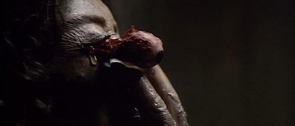 Being a Lucio Fulci movie, your gory expectations shall be kindly met. We enjoy graphic eye-gauging, chunky gore-spewing corpses, yet more frothy face-melting, the most brutal tarantula attack ever, grimy groaty pus-covered muck faces, a viciously messy throat-ripping dog bite, a head-exploding gunshot wounds, and then there’s the deceased plumber’s daughter. After seeing her mother melted down into a fizzy puddle, the young daughter of the molten woman in the morgue—perhaps a supernatural madness afflicted by what she had witnessed—also develops harrowingly white blind eyes just like Emily’s.