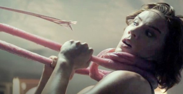 After her fighter jet is shot down in Afghanistan, Captain Sinclair (Charlotte Kirk;The Reckoning) escapes armed hostiles fleeing to shelter in an abandoned, underground, Russian bunker. The facility is housing humanoid biological samples in tanks, and the staff has been reduced to long-dead skeletal remains. During freefire with the Afghanis, a tank is broken, washing its hulking contents to the floor… and it awakens. Aaaaand, MOVIE!