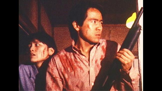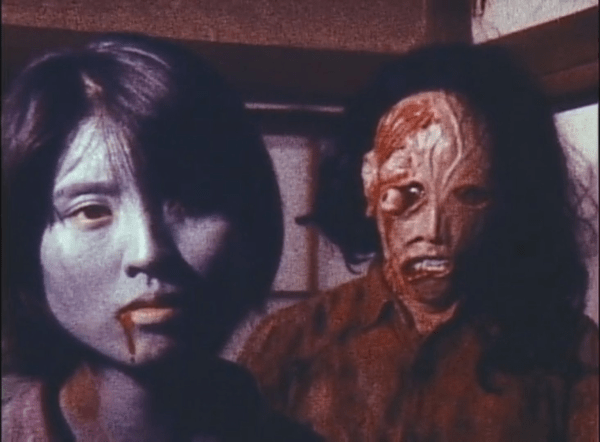 The influence of Evil Dead 2 (1987) is obvious. This movie has the alternate title Japanese Evil Dead, and it’s earned. There’s a lot of laughing deadites, a shovel decapitation, angry decapitated bodies, and Shinji even throws in a “groovy.” There are also stabs and impalements including one through the eyeball, and a healthy dose of blood. This film was made incredibly cheaply, and starts out sluggish. But despite a pretty low budget, it totally succeeds at becoming completely bonkers.