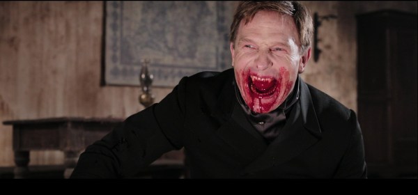 And what of our hero? Van Helsing’s (Rutger Hauer; The Sonata, Bleeders, The Hitcher) vampire slaying is haphazard at best. He seems to fumble his way to victory upon his first two encounters. The character played out fine. But sadly the finale with Dracula and Helsing fell completely flat… kind of in a funny way… but in a way that was definitely not meant to be funny. At one point, Van Helsing grabs two twigs from the forest floor and aggressively cross them into a “+ sign” crucifix with a snarl. That sums up the budgetary efforts and impact on what should be the wowing cinematic moments in this movie.