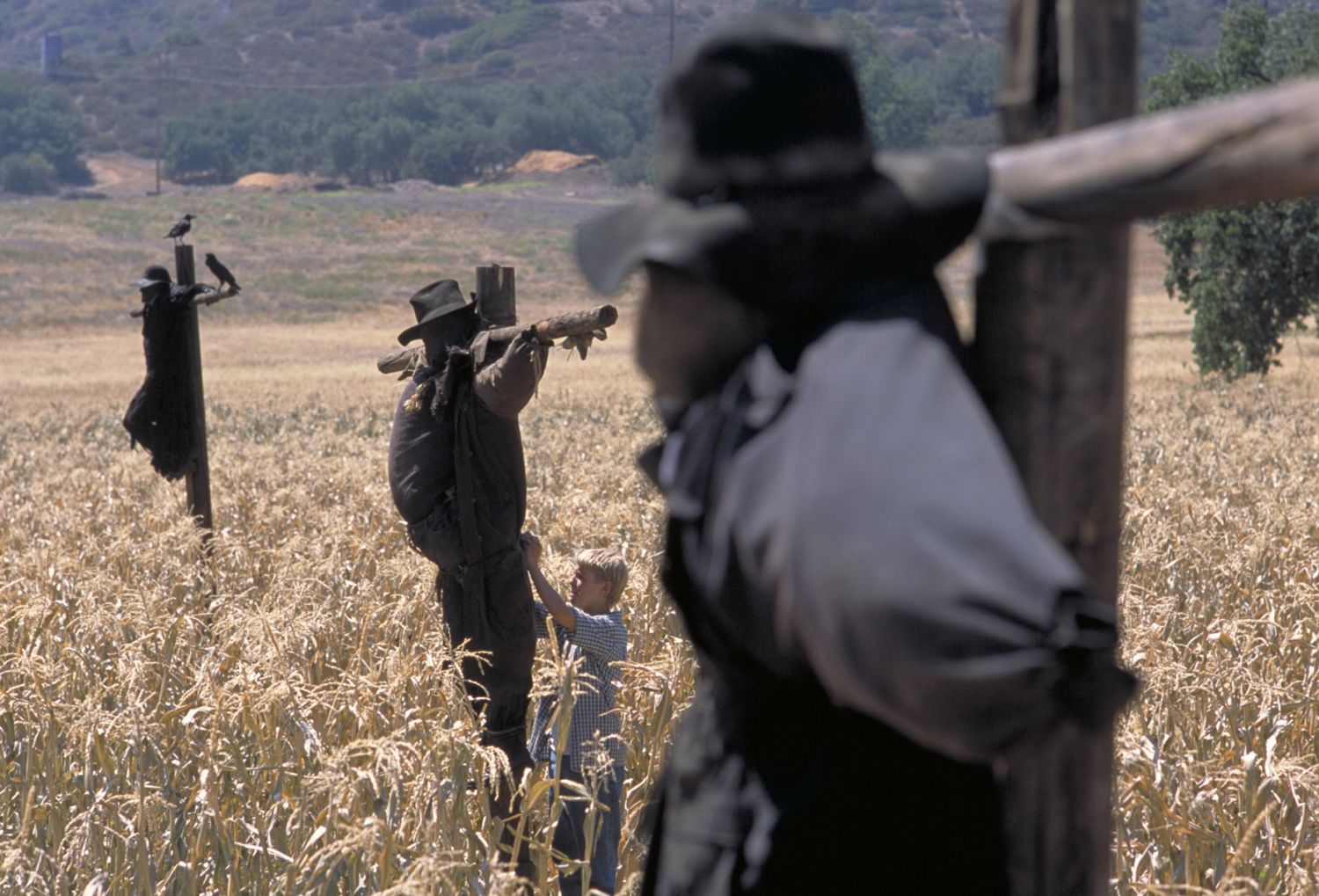 Having taken in a scent that it must have, The Creeper terrorizes the teenagers on the bus. The horror action is pretty solid, with the Creeper taking a pole through the eye socket and skull. That said, the gore is maybe better in this sequel. But like part 1, the film relies less on gore and more on its monstrous villain and action. I love how much high-speed flying and swooping and diving The Creeper does in this movie. I’m reminded a bit the flying/chase scene from Underworld: Evolution (2006). The creature effects in flight are great! The whole “Farmer versus Creeper” thing is also a blast! They’re harpooning back and forth… it’s a great battle actually. The effects and stunts when things get hot are excellent.