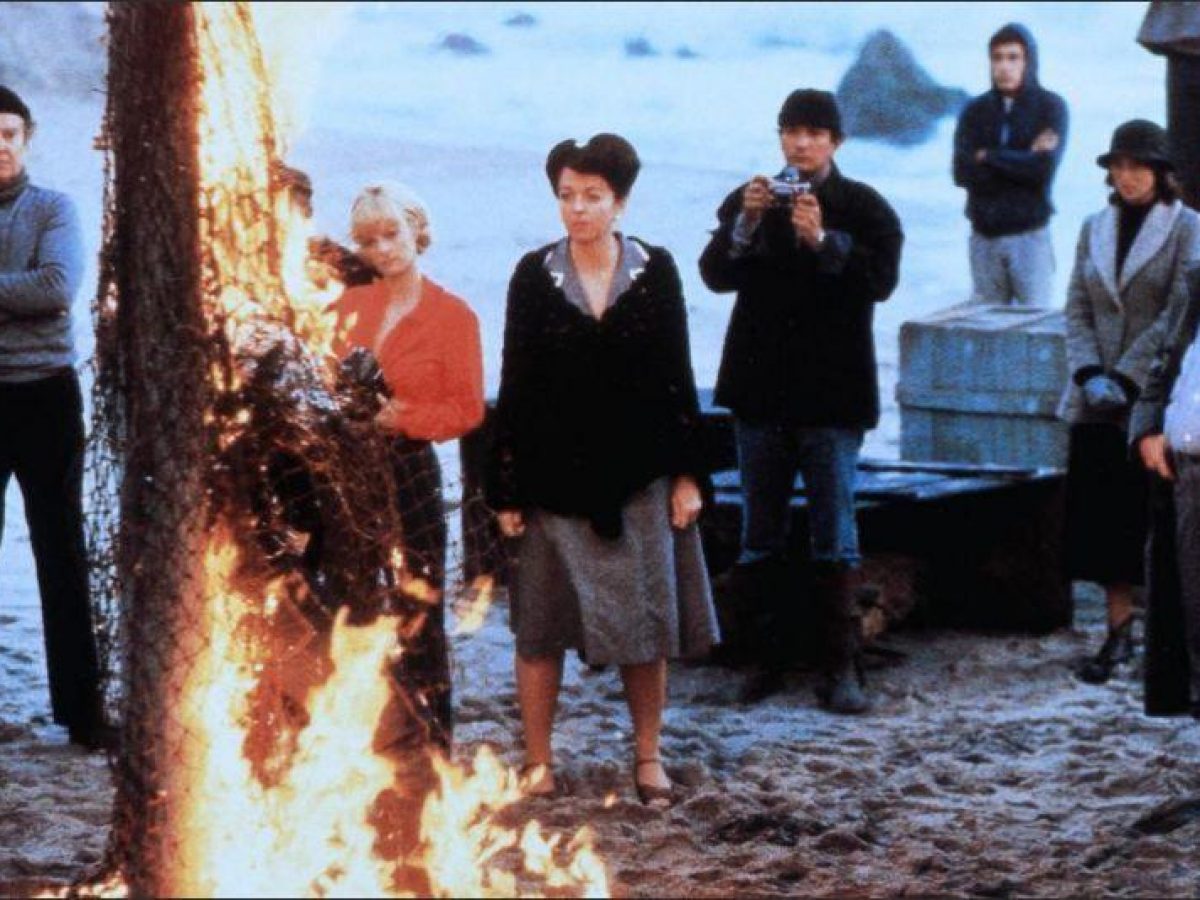 We open with gorgeous rocky beach cinematography in the Pacific northwest as a vacationing photographer meets a pretty girl (Lisa Blount; Prince of Darkness, Nightflyers, Needful Things) on the beach. A fantasy-like sequence fit to open an adult movie, they have a flirty exchange with perfect chemistry and begin an impromptu photo shoot which quickly escalates to direct seduction. But just when things are about to get really mature, the photographer is ambushed by local townsfolk using the woman as a diversion. They brutally beat him, tie him to a post and immolate him while calmly watching, taking photos of the whole process and politely “welcoming” him to Potter’s Bluff. They are as cold as ‘pod people.’