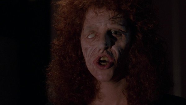 The one great effect to celebrate here is the makeup on the killer. Her mangled Phantom of the Opera face looks awesome. In fact, it was an image grab of just that which got me to watch this movie. Too bad it only graces us at the end of the movie. Visually speaking, this movie is a one trick pony that bores us for most of the ride. I recommend a hard pass.