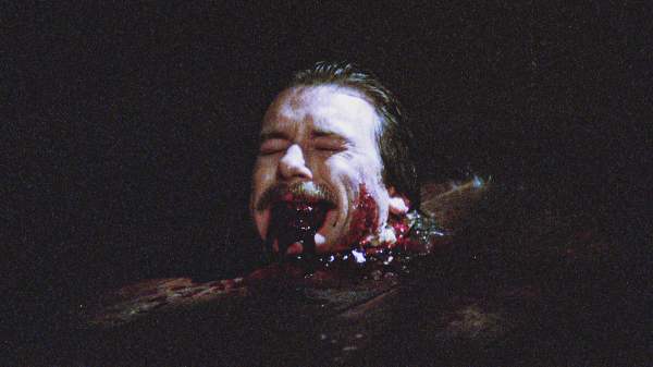 I was somewhat skeptical until the first death scene, a great gag in which a man’s gashed and bloody neck is caught between a pair of cellar storm doors and they are held shut by the weight of his hanging body as his legs twitch about. Oh, and then his severed head was in bed next to his wife in bed. Precious. Unfortunately, after this nothing provocative happens for a very long time.