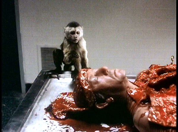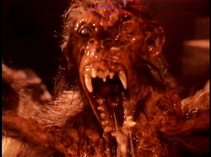 We really feel the budget limitations as we watch this low budget flick. But every effort was made to make this a fun movie, which means most of the budget went to gore and creature effects. The autopsy and surgery scenes are really gory, well done, and give you plenty of time to soak in the bloody bones and exposed organs on camera. Then the first monster effects are over the top with chonky latex mutations and I simply love it. Other effects wander into wild shenanigans, like a giant rat head breaking through a wall, a mutant monkey monster, or other mutilated, wet, disfigured creatures.