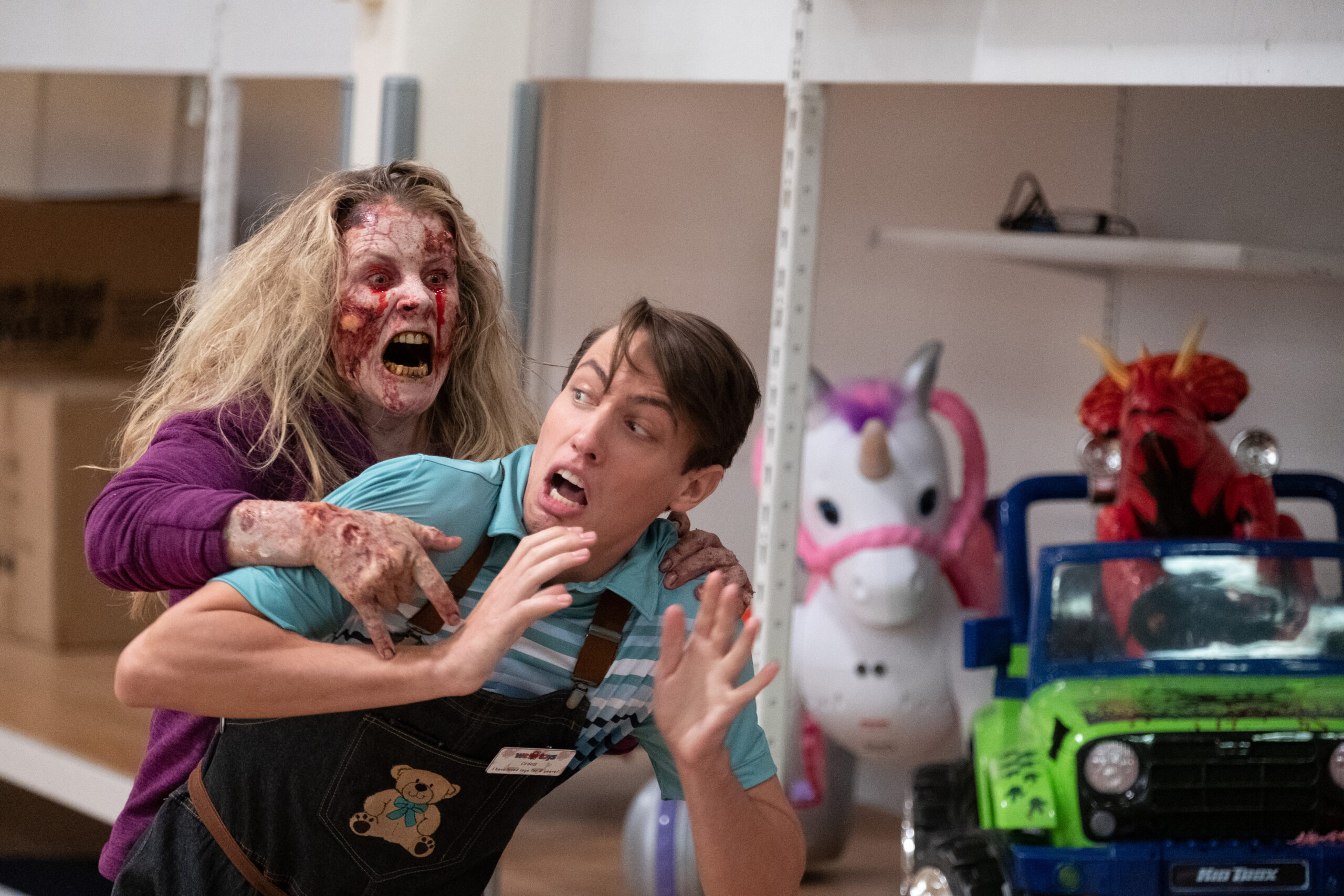 After a slimy gooey pulsating supergross alien organism crashes through the roof into a retail store, something infectious takes hold of the staff. Shortly thereafter, the We Love Toys staff face the rabid shoppers of Black Friday, and then rabid zombies.