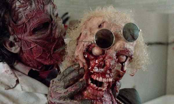 This movie wastes zero time before introducing the mangled gore. The autopsy scene occurs in the first five minutes of the movie and we see Mitch’s partially skinless face, muscle fibers and brain exposed, a blade impaled in his neck—like something out of Hellraiser (1987)! His hands are awesomely gashed and necrotic.