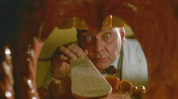 For the first 30 minutes, the death scenes are more about the dying than the killing, since Giggles employs sneaky injections (e.g., Doug E. Doug; Eight Legged Freaks) and poison-swapped pills to do some of his dirty work. And although no great spectacle, I enjoyed the nose examination death scene—although it was hardly a death scene and more of just a giggle-worthy gag paired with a silly line. The “take your temperature” death scene gag was likewise simple, but done with feisty execution and another eye-rollingly silly one-liner. The stomach pump scene playfully follows suit, although a tad more conceptually gross.