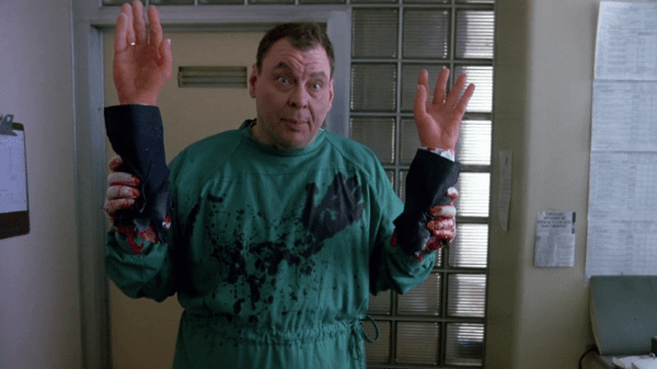 Folks, welcome to bonkers 90s horror solid gold! This zany flick opens with graphic non-consensual heart surgery in front of an insane asylum audience, severed limb seduction gags, and a criminally insane genius (Larry Drake; Darkman I-II, Dark Night of the Scarecrow, Tales from the Crypt) with an unnerving giggle and a propensity for issuing forceful medical care. Having just escaped his mental health facility, Dr. Giggles returns to his childhood home to live out his dream of being the doctor he promised his father he’d become.