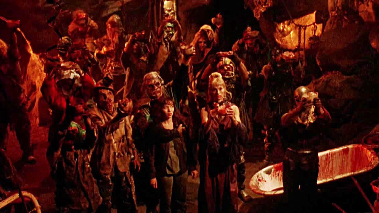 Stover and Judy are captured and brought to the mutants’ subterranean lair, which is largely a mining operation for human “artifacts” like car parts and kitchen appliances. These Morlocks are led by the Seer (Angus Scrimm; Phantasm I-V, Chopping Mall, Subspecies), a messiah from another world who brings the mutants hope.