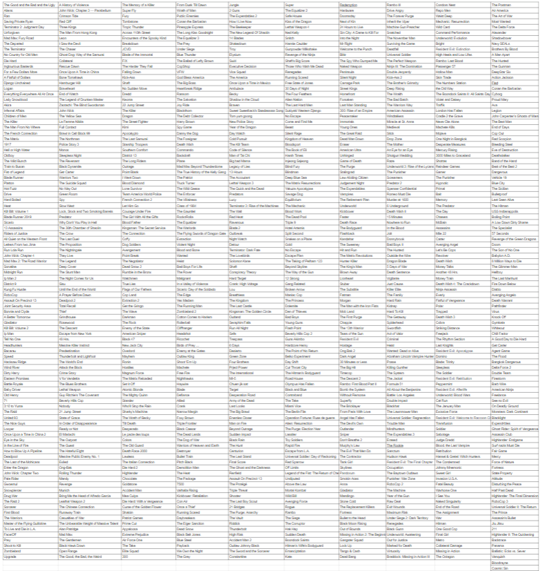 3. I tried to pull the Metacritic scores for every R-rated action film on the list. However, it’s missing many scores, and dozens of them only have 6-10 reviews, which isn’t very comprehensive. I like the system; it just doesn’t have all the data yet, which is why I didn’t use it in my ranking system. The scores are still considered and are nice to have.