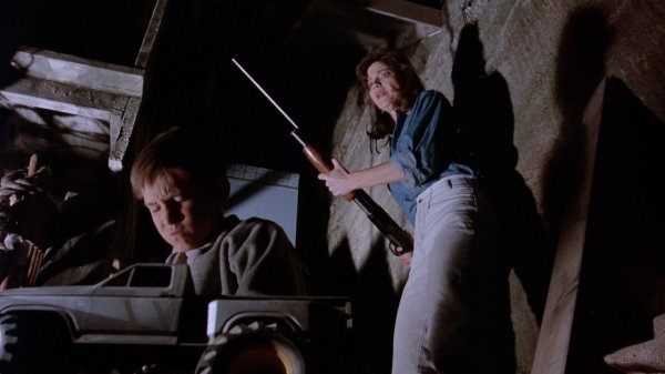A solemn narration about Indian curses and consequences of the white man’s broken promises warns of a cursed tunnel in director Kevin Tenney’s (Arrival II, Night of the Demons, Witchboard, Witchboard 2) tale of a boy versus the monster in his basement–a Native American monster created to eat all the promise-breaking white men.