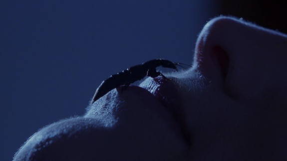 An older man (Herbert Lom; The Dead Zone) of questionable health and even more questionable purpose is helped by schoolteacher Miriam (Kelly Curtis). She brings him to her home, which is strangely familiar to the man, and helps the man to rest. In her sleep, the man awakens and purposefully places a rove beetle (Staphylinidae) on her face which crawls up her nose. Then the man dies with his handkerchief tightly affixed to his face… like, weirdly tightly affixed.
