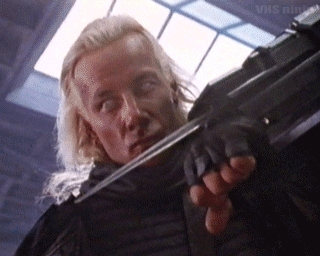Forced to team up with the FBI, Caine and special agent Smith (Brian Benben; Dream On) begrudgingly work together to apprehend who they reasonably presume to be more criminals while Talec forcibly overdoses victims on heroin and then sucks out their dopamine-rich brain juice with an effect much like the brain bug in Starship Troopers (1997) using his weaponized bracer like in Predator (1987). And speaking of Predator, Talec’s size, roaring (at minute 73), and tossing around of an otherwise large-muscled Germano-slavic hero also feels distinctly modeled. It’s easy to see what movies influenced this. But did this influence the remote battarang in Batman Returns (1992), or the brain bug’s rostral brain juice straw???