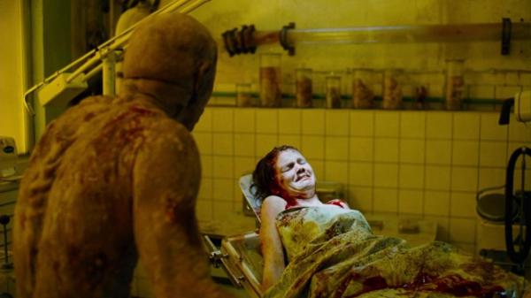 The blood and gore are worthy of mention. Some serious gashes, wound work, throat slashing and ripping, and a lovely head impalement transpires. But this movie is more about a weird, deformed, homicidal sewer dweller than it is a creature feature. We eventually learn the odd medical origin of the Creep; an underground facility sealed in within the sewer and train system.