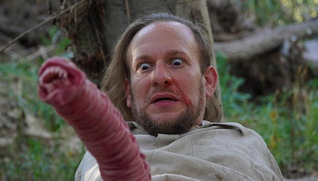 Director Chad Ferrin (HP Lovecraft’s The Old Ones, The Deep Ones) had fun with this one. He toys with us with dreams within dreams within dreams, and bizarre macabre imagery. But things elevate to the next level when Ambrose hooks himself and patient Fhelleps (and Slater) up to his dream analysis machine to connect with his mind. This dream sequence explains the origin of Jim Slater (a Color Out of Space-corrupted peasant who lived over 100 years ago), his exposure to a meteorite that corrupted him, and some mutant alien “manhoods.”