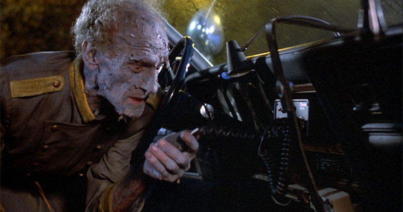 In other news, long after their exposure to the toxic gas, Freddy and Frank are very sick, and lack a pulse! So following Dawn of the Dead (1978), we have a slow zombification/transformation process as their bodies slowly die and they comically whimper.