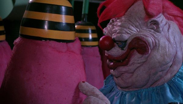The premise is all too familiar. Much as we enjoyed in Night of the Creeps (1986), The Blob (1988) and Critters (1986), aliens from outer space land on Earth and terrorize the citizens of a small town. Only these aliens look like twisted monstrous clowns and their spaceship resembles a circus tent. So now you know what kind of movie this is gonna’ be.
