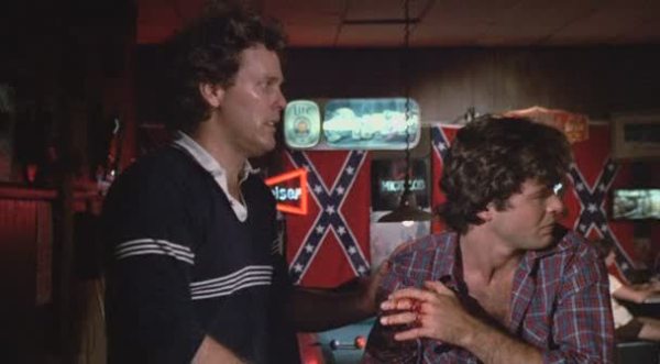 Like so many bad horror movies before, the local doctor (or scientist in some movies; e. g., The Nest, Mimic) seems to be an expert of numerous fields including genetics, invertebrate biology, microbiology and hematology. The alcoholic sheriff (Bo Hopkins; Dusk Till Dawn II, Tentacles, Phantoms) and a cute school teacher also come to Josh’s aid.