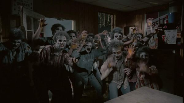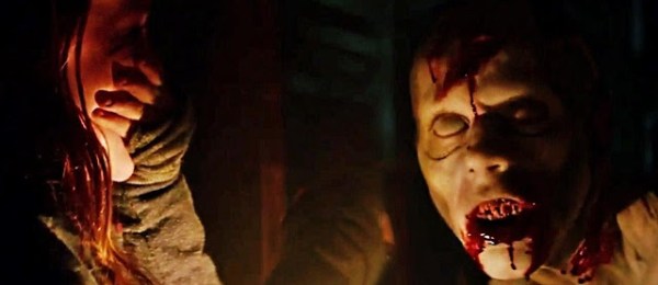 We see some madcap hammed-up zombie acting. These mutants roar like dinosaurs and come at you with their hands in the air as if a 7-year-old was doing his best monster impression. It was especially amusing when the bald redneck zombie breaks “zombie character” to catch a falling fellow zombie (after he’s shot). I’m also not sure why they’re so slow in most scenes, when we saw a zombie sprint earlier in the movie like a 28 Days Later (2002) rage zombie way ahead of his time. But, to be fair, these are really minor criticisms given that these mutant zombies drink blood through their palm-vaginas. Yes, that statement is hardly an exaggeration!