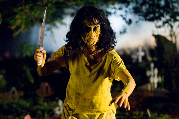 Venturing to the long-abandoned Camp Crystal Lake to harvest (i.e., steal) the marijuana harvest of a grow-operation, some unlucky hikers encounter a sack-masked killer. Wrapping a girl in a sleeping bag and hanging it over a fire—this Jason is just plain mean, which should come as no surprise with director Marcus Nispel (The Texas Chainsaw Massacre). Not to mention the visceral machete-through-the-floorboards scene, the cruel flesh-stripping bear trap, and the machete cleaving halfway through a dude’s head! All of which honor some of our favorite death scenes in the franchise!