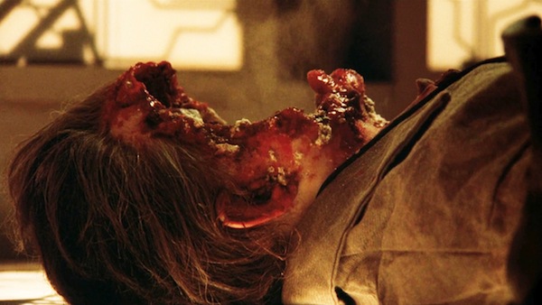 The opening death scene—a man getting instantly “cubed” by cross-hatched razor wire—is one you’ve likely seen reiterated in other movies (e.g., Ghost Ship, Resident Evil, Wrong Turn 3). It’s satisfying, surprising, and deliciously gory as the squares of the victim topple over like a bloody butcher’s building blocks. Then the face-melting acid death scene is just plain mean, grimy and gooey. And while both scenes are quite memorable, they are the only two you’ll ever discuss after seeing the film.