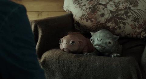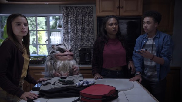 Now, shortly after the release of Critters: A New Binge (2019), director Bobby Miller (The Cleanse) presents perhaps yet another alternate timeline/universe. 20-year-old Drea (Tashiana Washington; Shaft) is babysitting Trissy (Ava Preston) and Jake (Jack Fulton) along with her own little brother Phillip (Jaeden Noel). For some inane reason they end up going on a hike and stumble across some crites that have crash-landed on Earth. In no way ripping off Gremlins (1984) any more than did the 1986 original, they find a cute white-haired crite that seems like a friendly Gizmo critter. Later we see the franchise favorite bald and eye-scarred crites.